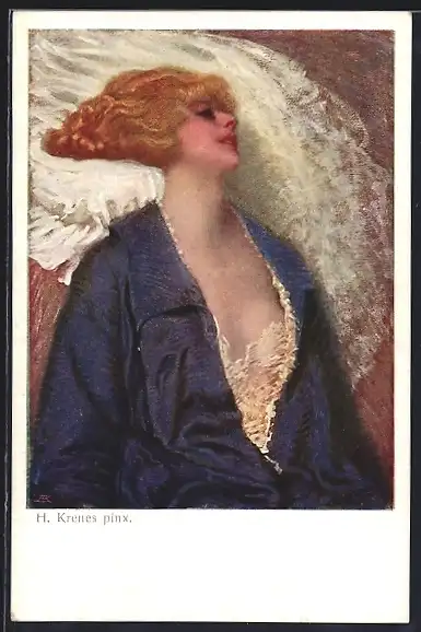 Künstler-AK H.Krenes: Frau im Schlafmantel in Träumerei versunken
