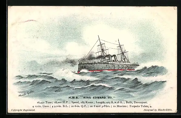 Künstler-AK H.M.S. King Edward VII im hohen Wellengang
