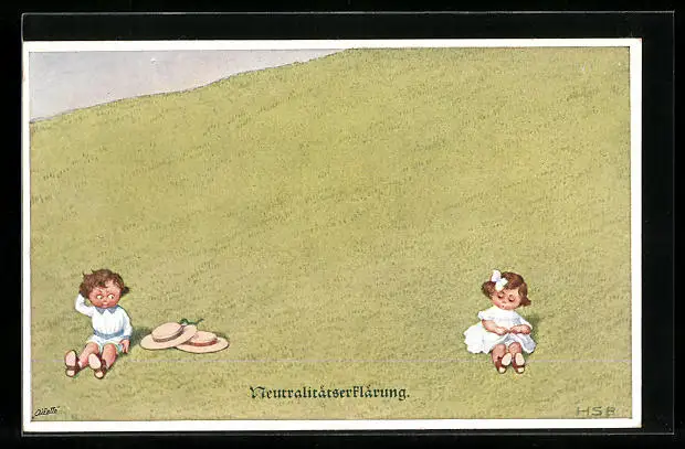 Künstler-AK H.S.B.: Neutralitätserklärung, 2 Kinder auf einer Wiese