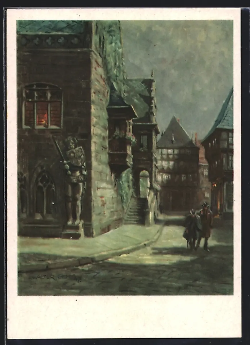 Künstler-AK Halberstadt, Mondnacht a. Holzmarkt