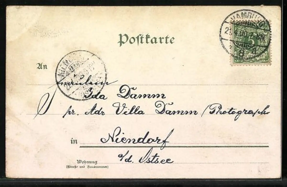 alte Ansichtskarte, gelaufen 1900, kleiner Oberflächenschaden, Eckknick links oben, sonst guter Zustand