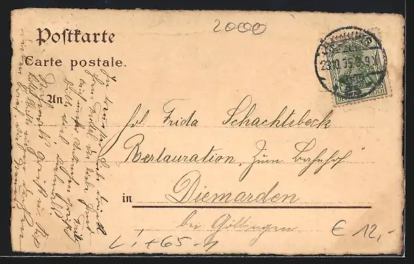 alte Ansichtskarte, gelaufen 1905, guter Zustand