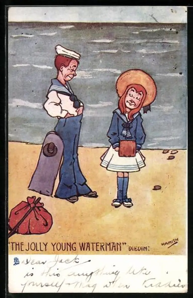 Künstler-AK Hamish: Kleiner Matrose und Mädchen am Strand