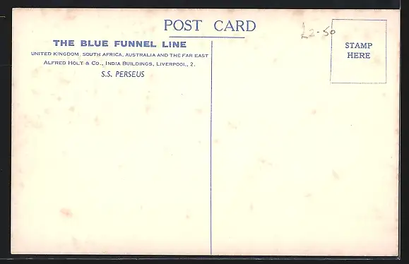 Künstler-AK Handelsschiff S.S. Perseus in Küstennähe, The Blue Funnel Line