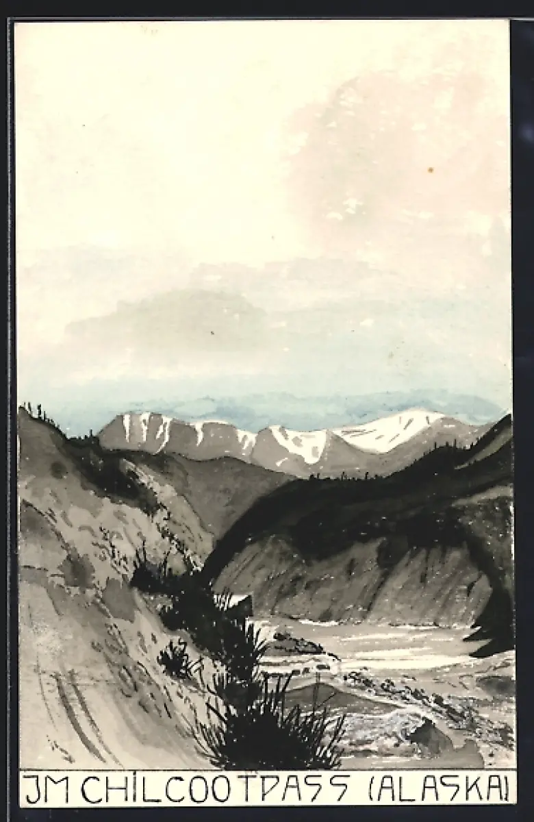 Künstler-AK Handgemalt: Chilcootpass, AK, Blick auf den Chilcootpass gegen das Hochgebirge