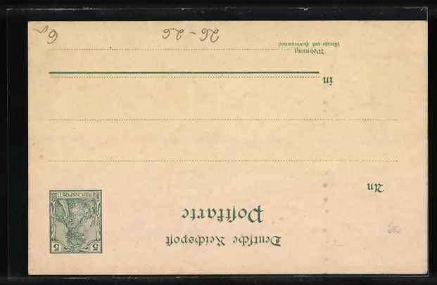 Personenbezogene Daten auf der Rückseite der Karte wurden durch blauen Textmarker unkenntlich gemacht. Die blauen Stellen sind auf die Vorderseite durchgeweicht und wirken sich negativ auf das Postkartenfoto aus