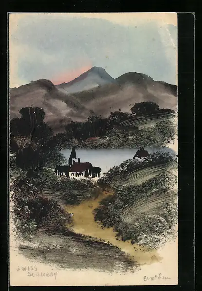 Künstler-AK Handgemalt: Landschaft mit Bergen