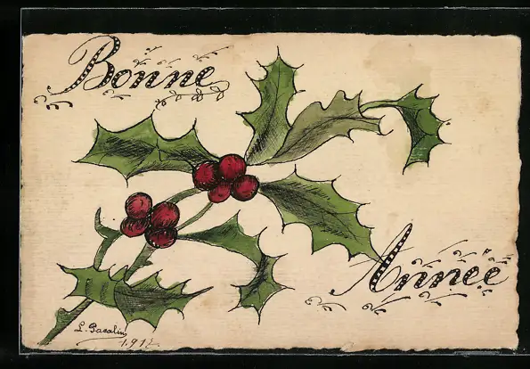 Künstler-AK Handgemalt: Mistelzweig mit Früchten