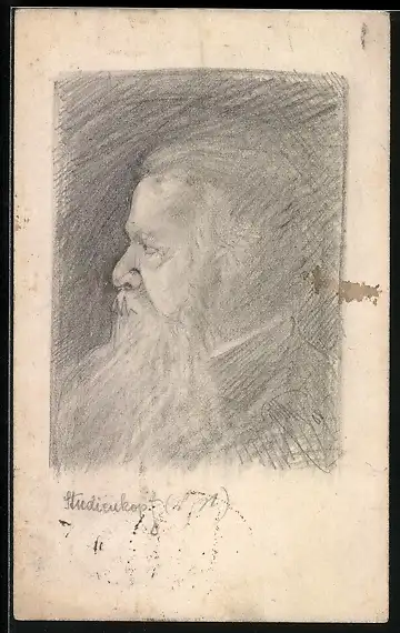 Künstler-AK Handgemalt: Seitliches Konterfei eines alten Mannes mit langem Bart