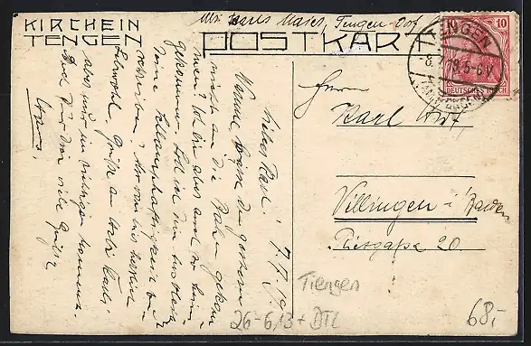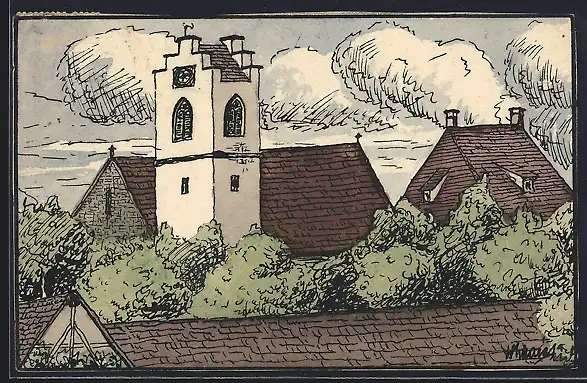 Künstler-AK Handgemalt: Tengen, Blick auf die Kirche