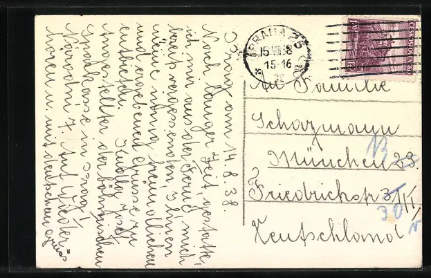 alte Ansichtskarte, gelaufen 1938, Stempelspur, guter Zustand
