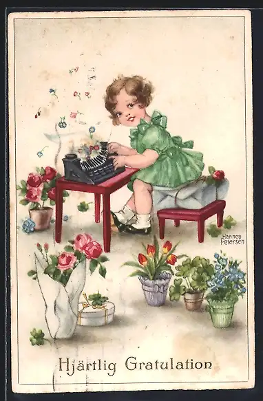 Künstler-AK Hannes Petersen: Mädchen an der Schreibmaschine