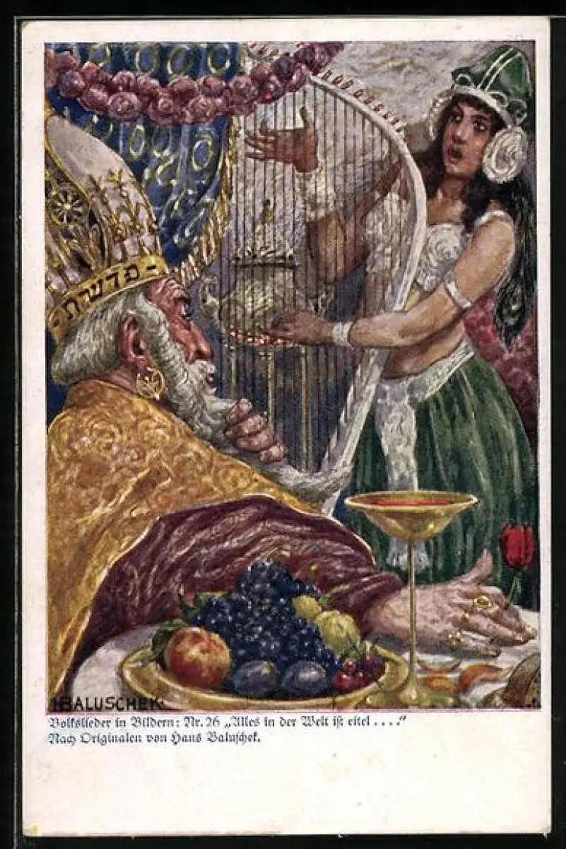 Künstler-AK Hans Baluschek: Volkslieder in Bildern, Alles in der Welt ist eitel, Frau spielt die Harfe