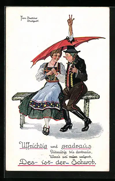 Künstler-AK Hans Boettcher: Schwäbisches Paar sitzt zusammen auf der Bank