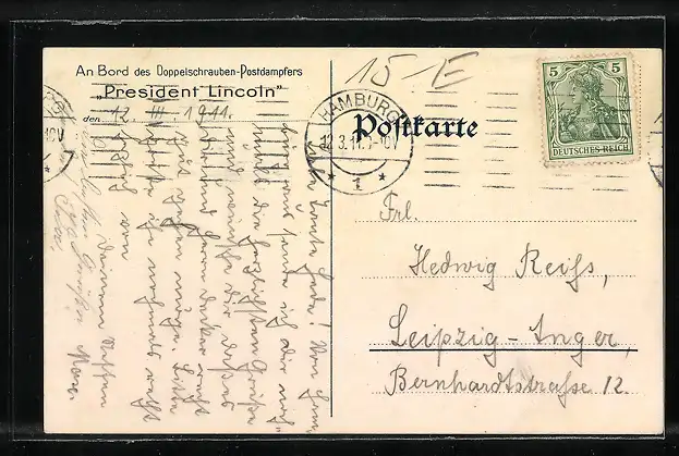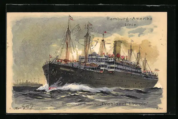 Künstler-AK Hans Bohrdt: Doppelschrauben-Postdampfer President Lincoln der Hamburg-Amerika Linie