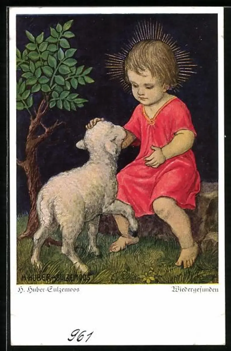Künstler-AK Hans Huber-Sulzemoos: Kleines Mädchen mit einem Lämmchen