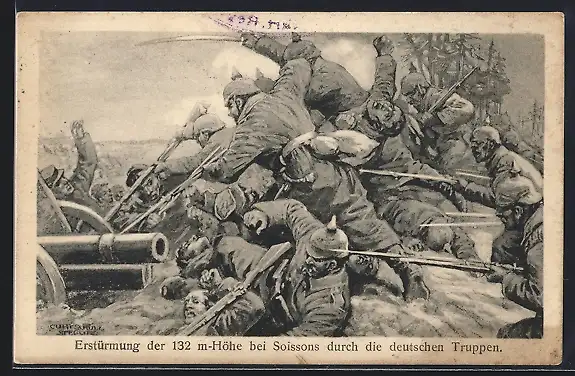 Künstler-AK Hans Rudolf Schulze: Curt Schulz-Steglitz: Erstürmung der 132-Höhe bei Soissons durch deutsche Truppen