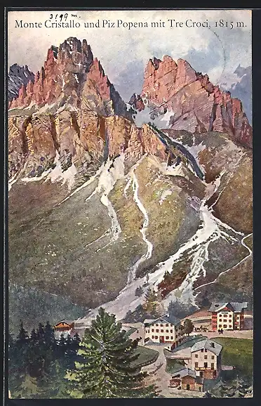 Künstler-AK Hans Treiber: Monte Cristallo, Blick auf Piz Popena und Tre Croci