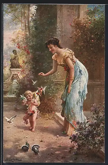 Künstler-AK Hans Zatzka: Amor erscheint der Frau als Vogelhändler