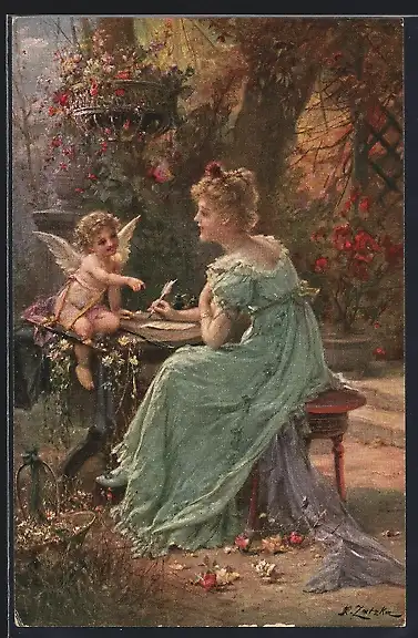 Künstler-AK Hans Zatzka: Inspiration durch Amor