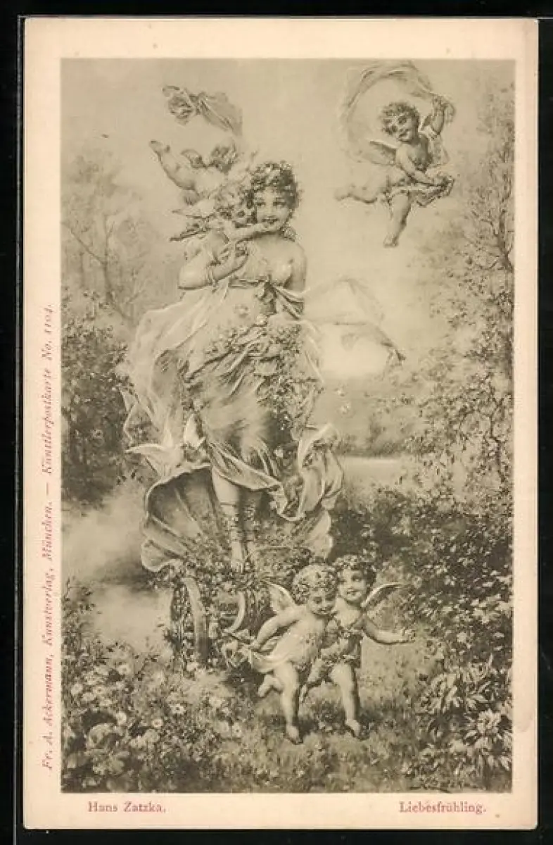 Künstler-AK Hans Zatzka: Liebesfrühling, Schönes Mädchen wird von Engeln geleitet