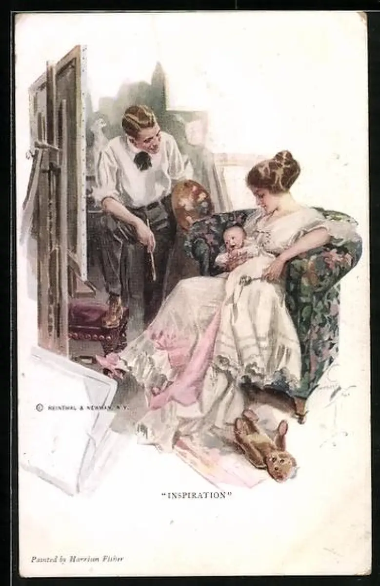 Künstler-AK Harrison Fisher: Mutter und Baby geben dem Maler seine Inspiration