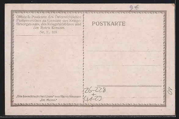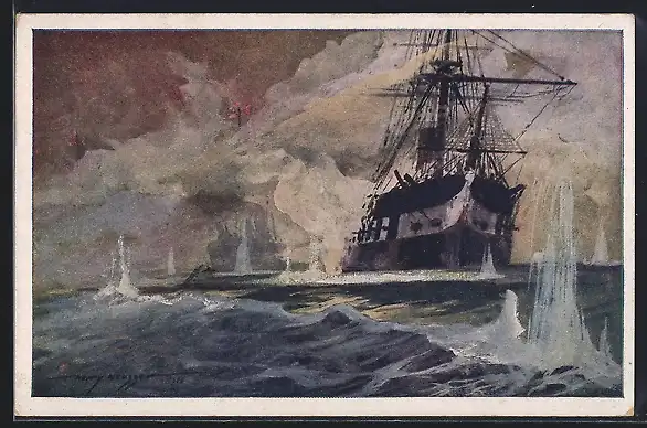 Künstler-AK Harry Heusser: Österreichisches Kriegsschiff in der Seeschlacht bei Lissa