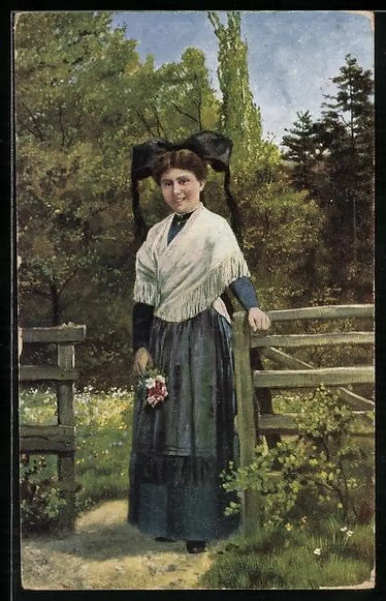 Künstler-AK Heinrich Hoffmann: Markgräflerin in ihrer Tracht am Gartenzaun