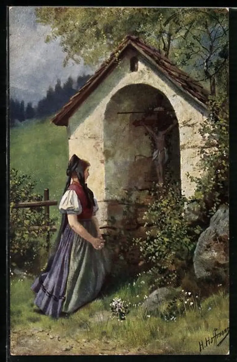 Künstler-AK Heinrich Hoffmann: junge Frau am Bildstöckl
