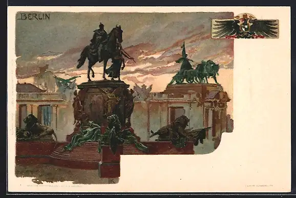 Künstler-AK Heinrich Kley: AK Berlin-Tiergarten, Denkmal und Brandenburger Tor