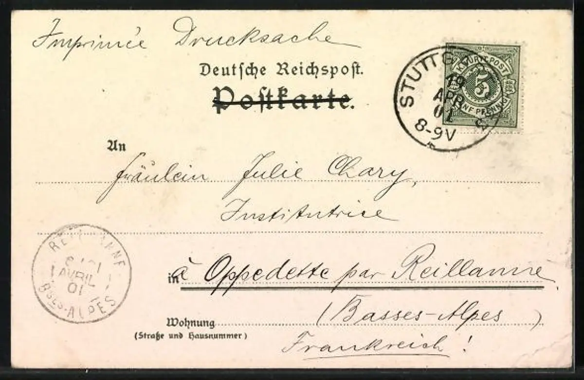 gelaufen 1901, Eckknick li. unten, kl. Einriss li. oben, guter Zustand
