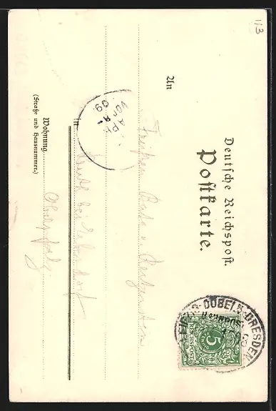 alte Ansichtskarte, gelaufen 1899, Einriss rechter Rand mittig, guter Zustand