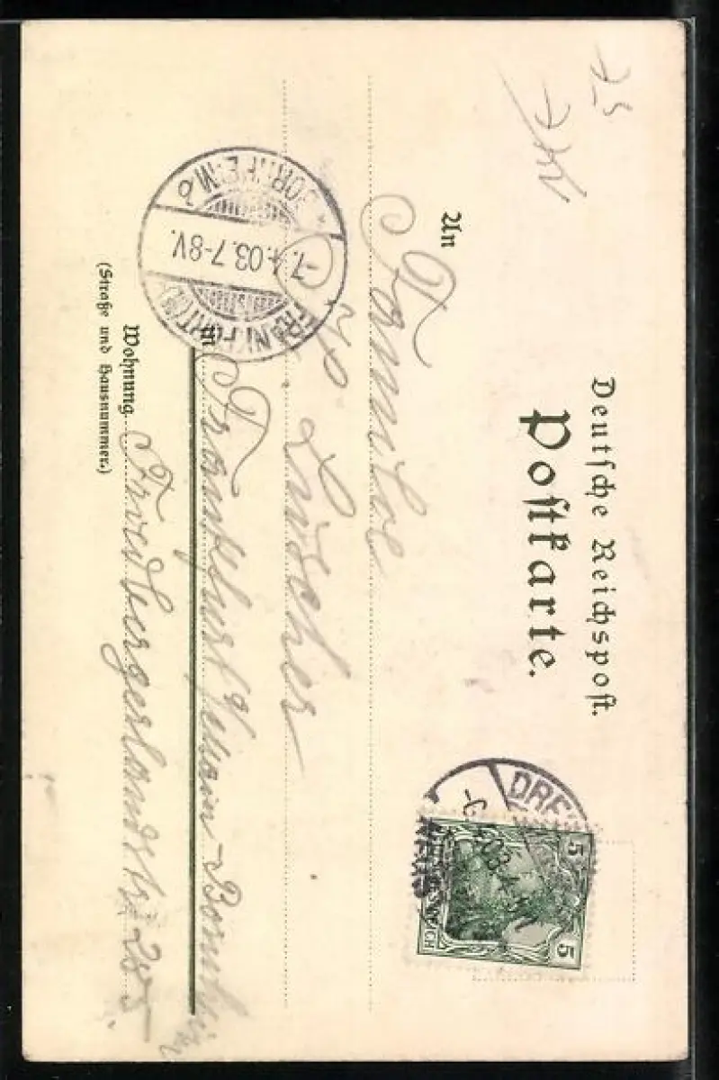 alte Ansichtskarte, gelaufen 1903, Eckknick li. oben, sehr kl. Einriss re. unten, guter Zustand