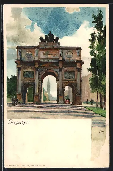 Künstler-AK Heinrich Kley: München, Ansicht des Siegestor