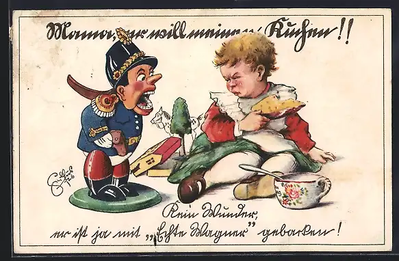 Künstler-AK Heinz Geilfus: Mama, er will meinen Kuchen, Nussknacker, Reklame für Butter
