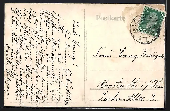 alte Ansichtskarte, gelaufen 1927, Eckknick li. unten, guter Zustand
