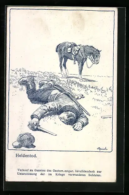 Künstler-AK Heldentod, gefallener Reiter