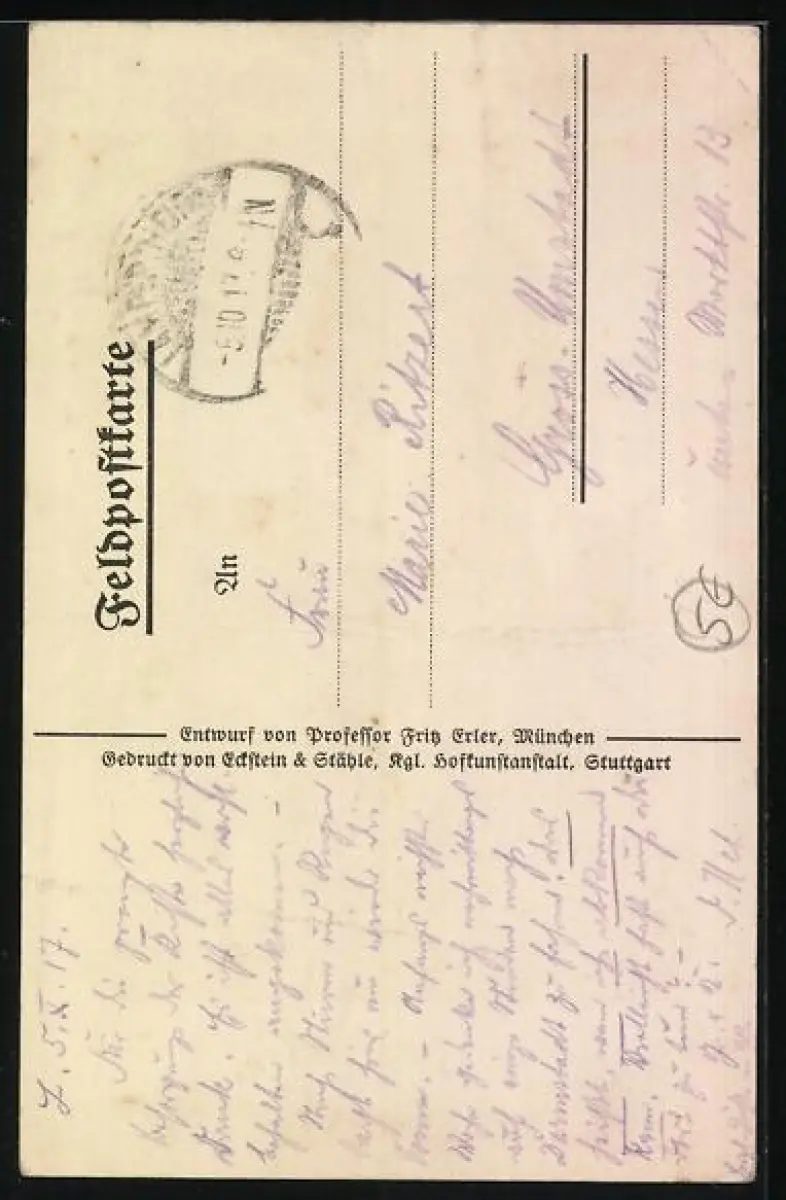 gelaufen 1917, Eckknicke li. oben, guter Zustand