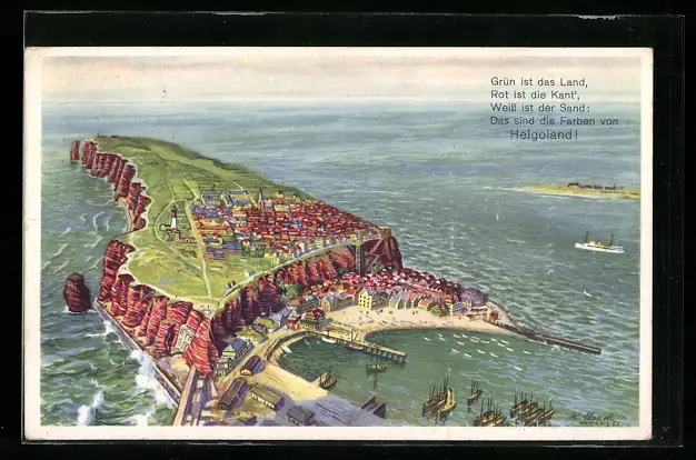 Künstler-AK Helgoland, Die Insel aus der Vogelschau