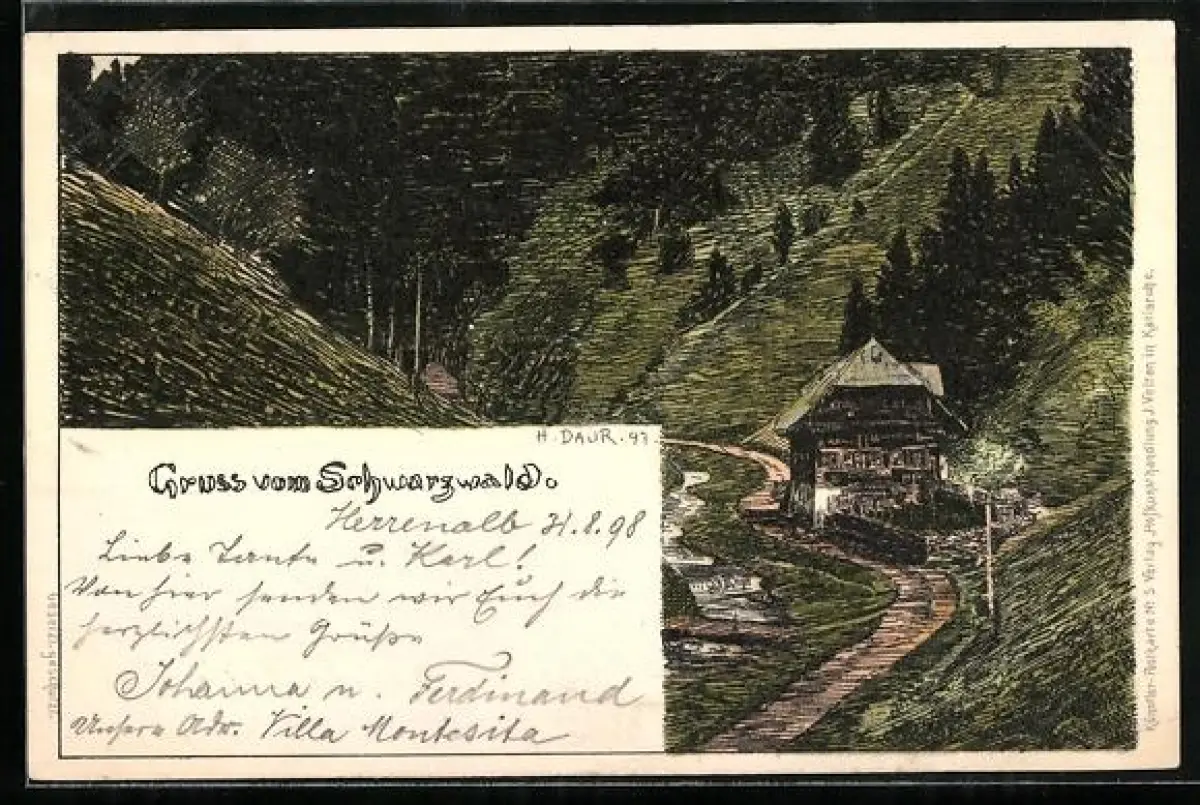 Künstler-AK Hermann Daur: Gruss vom Schwarzwald, Talidyll mit Haus