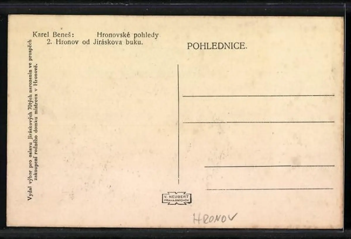 Künstler-AK Hronov, Hronov od Jiraskova buku