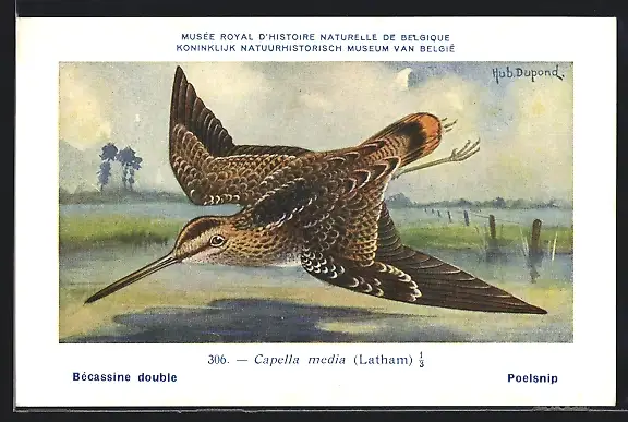 Künstler-AK Hubert Dupond: Musée Royal d'Histoire Naturelle de Belgique, Vogel-Serie: Poelsnip