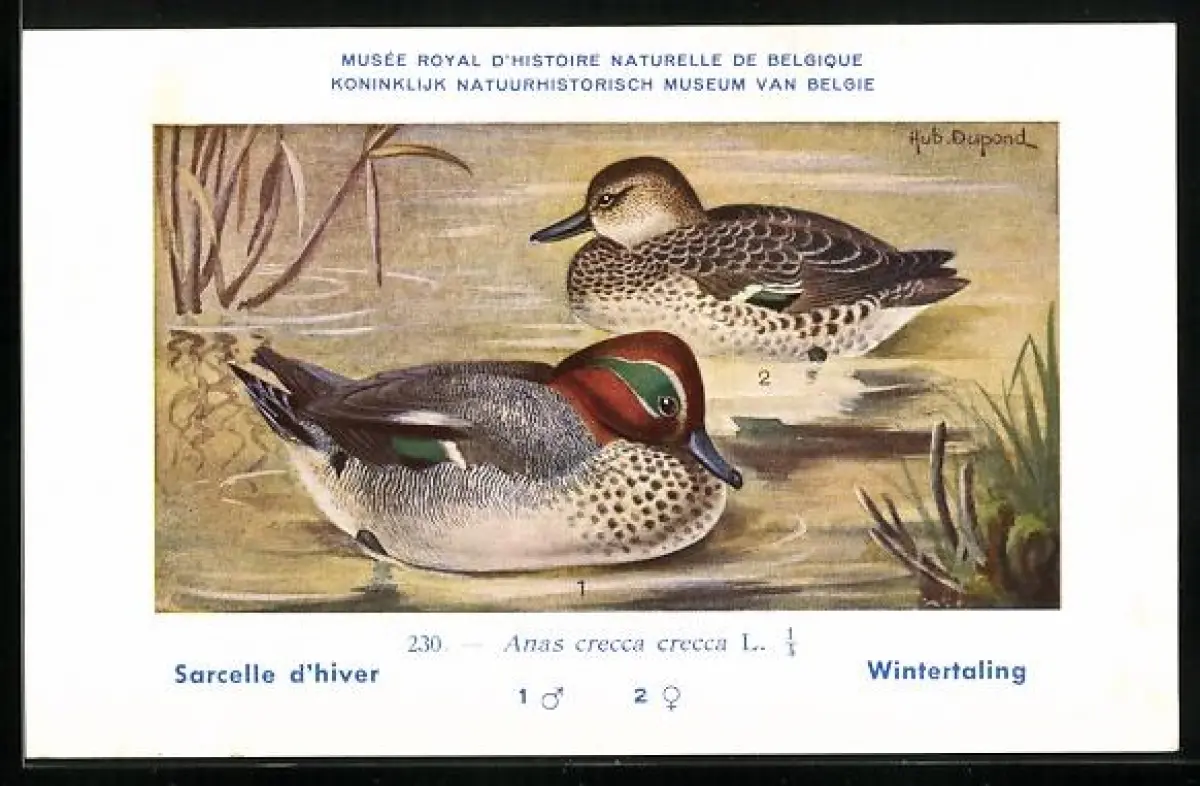 Künstler-AK Hubert Dupond: Sarcelle d`hiver, Anas crecca crecca