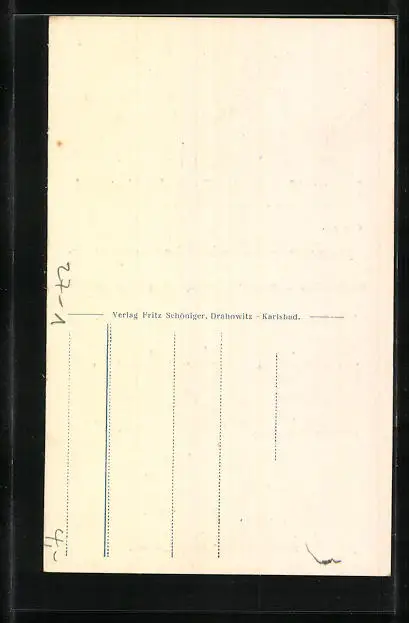 Personenbezogene Daten auf der Rückseite der Karte wurden durch blauen Textmarker unkenntlich gemacht. Die blauen Stellen sind auf die Vorderseite durchgeweicht und wirken sich negativ auf das Postkartenfoto aus
