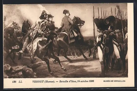 Künstler-AK Iéna, Bataille d`Iéna 1806, Napoléon zu Pferde