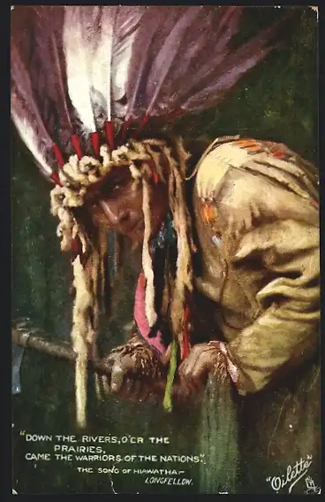 Künstler-AK Indianer mit Tomahawk, The Song of Hiawatha