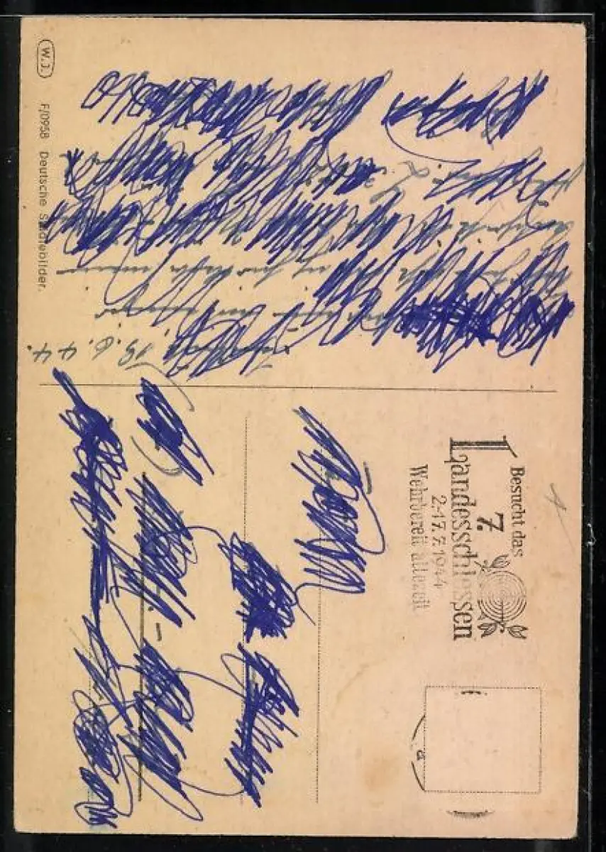 alte Ansichtskarte, gelaufen 1944, Briefmarke entfernt, rückseitig Oberflächenschaden, Eckknicke oben, guter Zustand