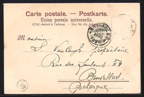 alte Ansichtskarte, gelaufen, Briefmarke entfernt, rückseitig Oberflächenschaden, guter Zustand