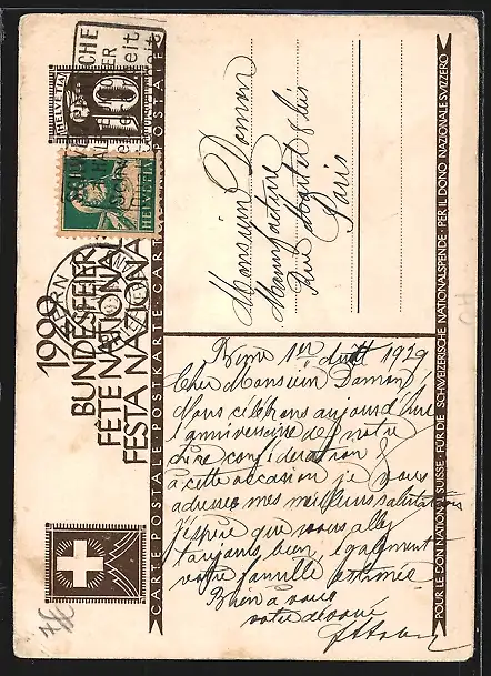 Künstler-AK J. Courvoisier: Schweizer Bundesfeier 1929