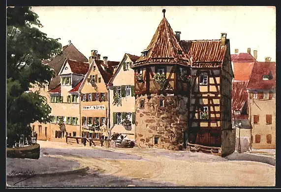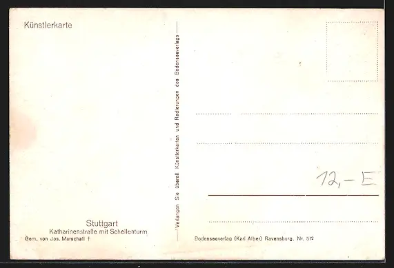 Künstler-AK J.Marschall: Stuttgart, Katharinenstrasse mit Schellenturm